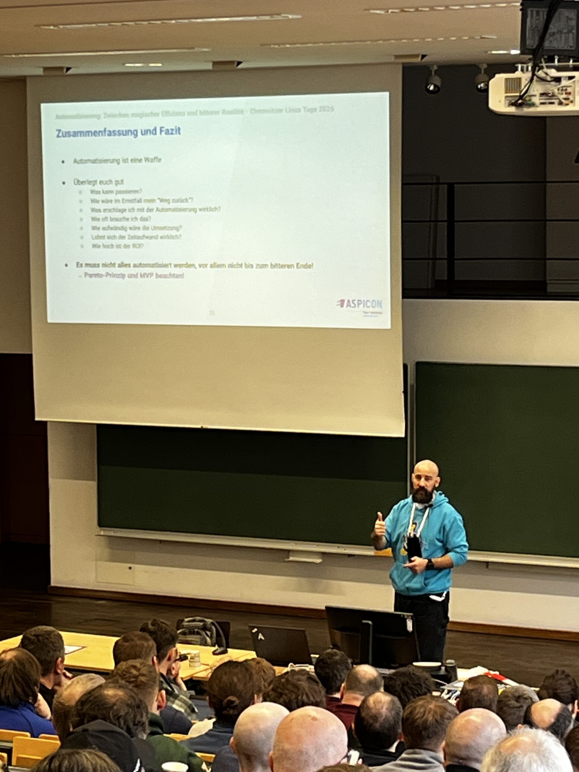 Home → ASPICON Company Updates → “Automatisierung: Zwischen magischer Effizienz und bitterer Realität” – Unser Vortrag auf den Chemnitzer Linux-Tagen 2026